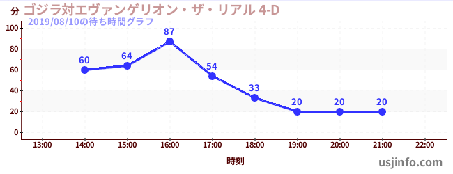 • ゴジラ対エヴァンゲリオン・ザ・リアル 4-D$B$N(B2019年08月10日の待ち時間