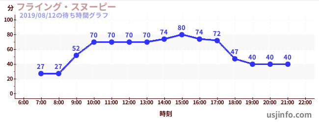 • フライング・スヌーピー$B$N(B2019年08月12日の待ち時間
