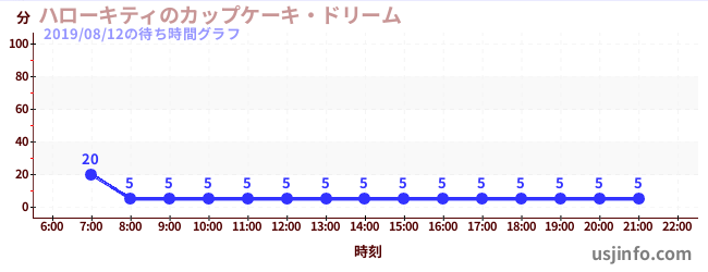 • ハローキティのカップケーキ・ドリーム$B$N(B2019年08月12日の待ち時間