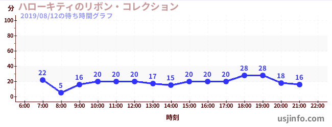 • ハローキティのリボン・コレクション$B$N(B2019年08月12日の待ち時間