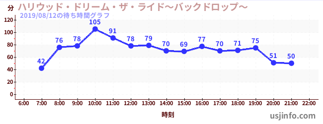 • ハリウッド・ドリーム・ザ・ライド〜バックドロップ〜$B$N(B2019年08月12日の待ち時間