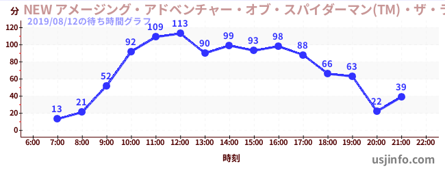• NEW アメージング・アドベンチャー・オブ・スパイダーマン(TM)・ザ・ライド 4K3D$B$N(B2019年08月12日の待ち時間