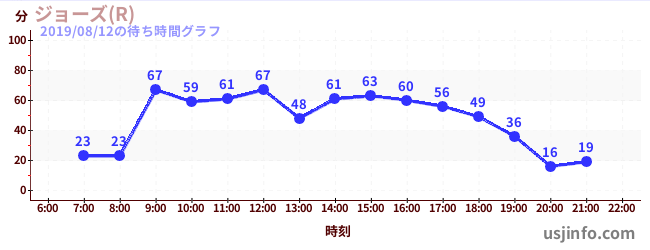 • ジョーズ(R)$B$N(B2019年08月12日の待ち時間