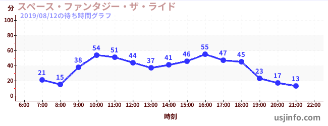 • スペース・ファンタジー・ザ・ライド$B$N(B2019年08月12日の待ち時間