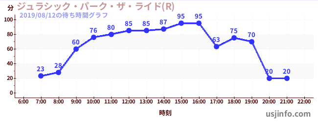 • ジュラシック・パーク・ザ・ライド(R)$B$N(B2019年08月12日の待ち時間
