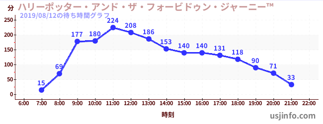 • ハリーポッター・アンド・ザ・フォービドゥン・ジャーニー™$B$N(B2019年08月12日の待ち時間