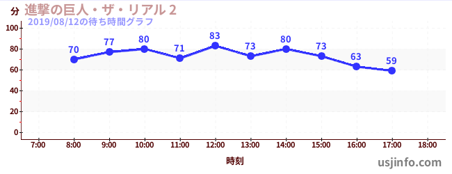• 進撃の巨人・ザ・リアル 2$B$N(B2019年08月12日の待ち時間