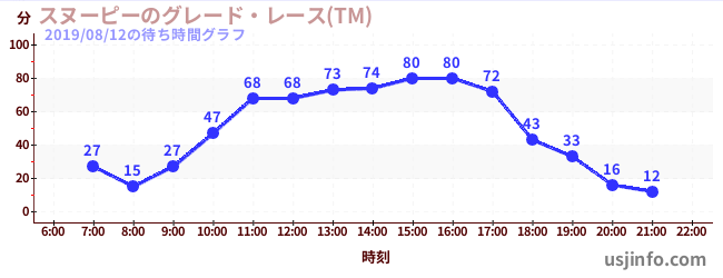 • スヌーピーのグレード・レース(TM)$B$N(B2019年08月12日の待ち時間