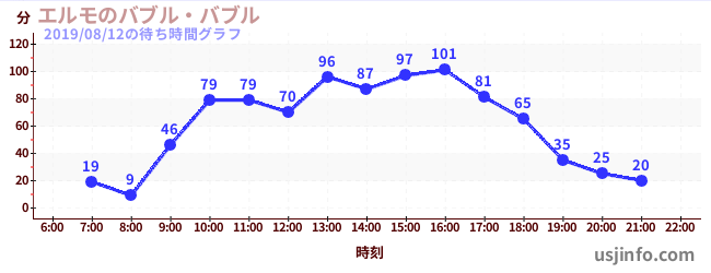 • エルモのバブル・バブル$B$N(B2019年08月12日の待ち時間