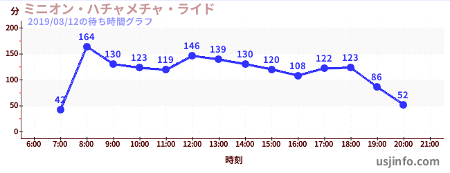 • ミニオン・ハチャメチャ・ライド$B$N(B2019年08月12日の待ち時間