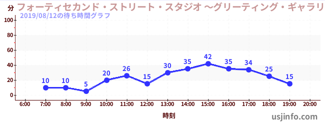 • フォーティセカンド・ストリート・スタジオ ~グリーティング・ギャラリー~ ピーナッツの仲間たち$B$N(B2019年08月12日の待ち時間