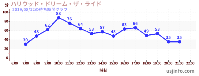 • ハリウッド・ドリーム・ザ・ライド$B$N(B2019年08月12日の待ち時間