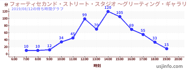 • フォーティセカンド・ストリート・スタジオ ~グリーティング・ギャラリー~ ミニオン$B$N(B2019年08月12日の待ち時間