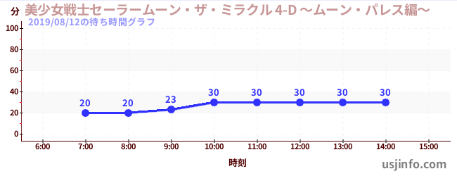 • 美少女戦士セーラームーン・ザ・ミラクル 4-D ~ムーン・パレス編~$B$N(B2019年08月12日の待ち時間