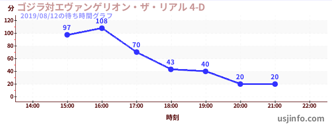 • ゴジラ対エヴァンゲリオン・ザ・リアル 4-D$B$N(B2019年08月12日の待ち時間