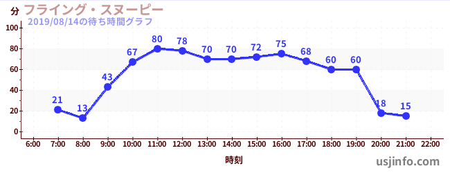 • フライング・スヌーピー$B$N(B2019年08月14日の待ち時間