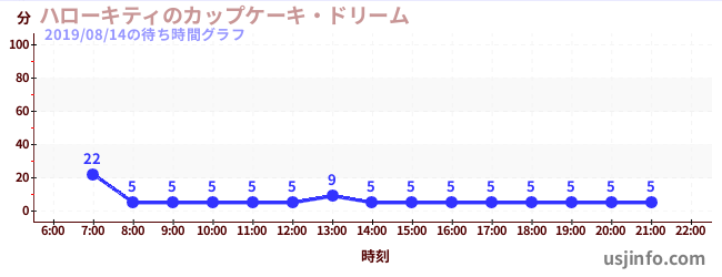 • ハローキティのカップケーキ・ドリーム$B$N(B2019年08月14日の待ち時間