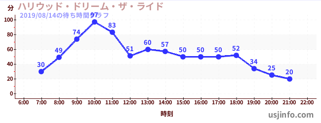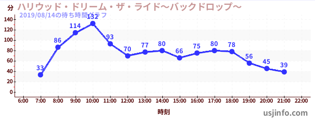 • ハリウッド・ドリーム・ザ・ライド〜バックドロップ〜$B$N(B2019年08月14日の待ち時間