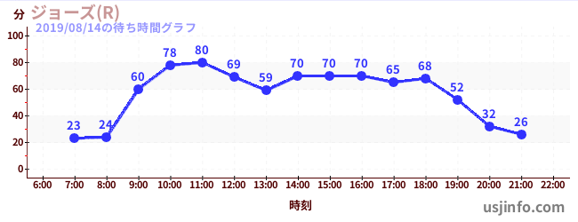 • ジョーズ(R)$B$N(B2019年08月14日の待ち時間