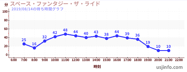 • スペース・ファンタジー・ザ・ライド$B$N(B2019年08月14日の待ち時間