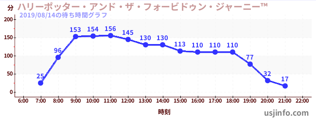 • ハリーポッター・アンド・ザ・フォービドゥン・ジャーニー™$B$N(B2019年08月14日の待ち時間