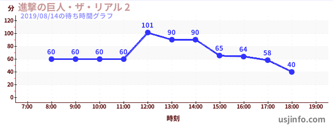 • 進撃の巨人・ザ・リアル 2$B$N(B2019年08月14日の待ち時間