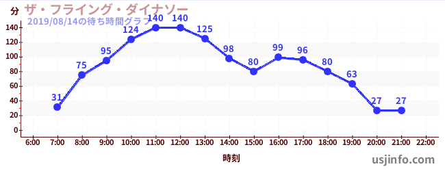 • ザ・フライング・ダイナソー$B$N(B2019年08月14日の待ち時間