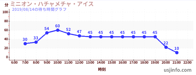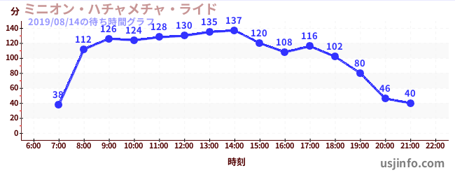 • ミニオン・ハチャメチャ・ライド$B$N(B2019年08月14日の待ち時間