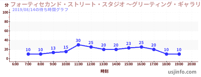 • フォーティセカンド・ストリート・スタジオ ~グリーティング・ギャラリー~ ピーナッツの仲間たち$B$N(B2019年08月14日の待ち時間