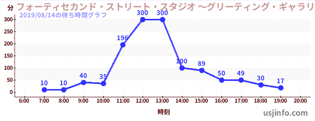 • フォーティセカンド・ストリート・スタジオ ~グリーティング・ギャラリー~ ミニオン$B$N(B2019年08月14日の待ち時間