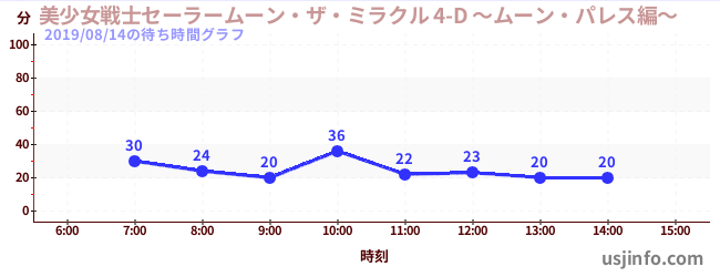 • 美少女戦士セーラームーン・ザ・ミラクル 4-D ~ムーン・パレス編~$B$N(B2019年08月14日の待ち時間