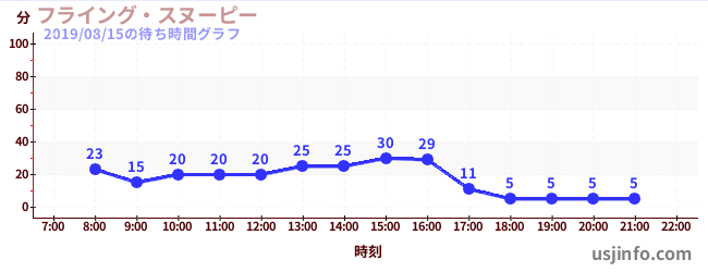 • フライング・スヌーピー$B$N(B2019年08月15日の待ち時間