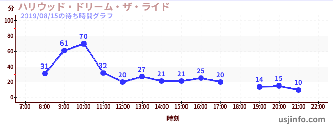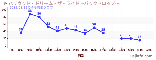 • ハリウッド・ドリーム・ザ・ライド〜バックドロップ〜$B$N(B2019年08月15日の待ち時間
