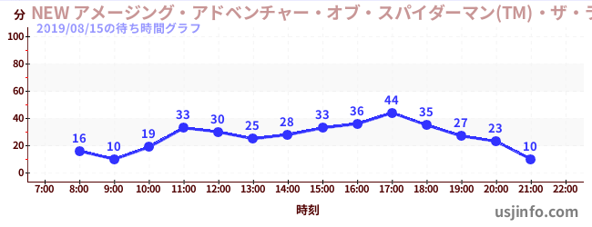 • NEW アメージング・アドベンチャー・オブ・スパイダーマン(TM)・ザ・ライド 4K3D$B$N(B2019年08月15日の待ち時間