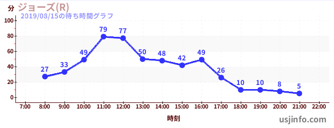• ジョーズ(R)$B$N(B2019年08月15日の待ち時間