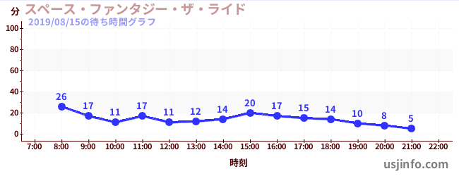 • スペース・ファンタジー・ザ・ライド$B$N(B2019年08月15日の待ち時間