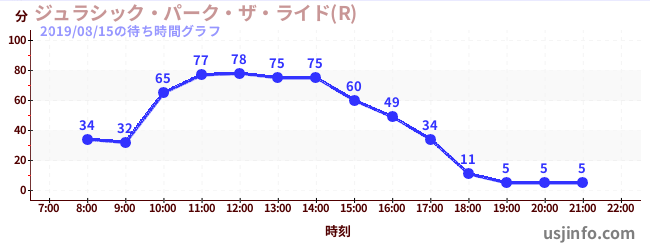 • ジュラシック・パーク・ザ・ライド(R)$B$N(B2019年08月15日の待ち時間