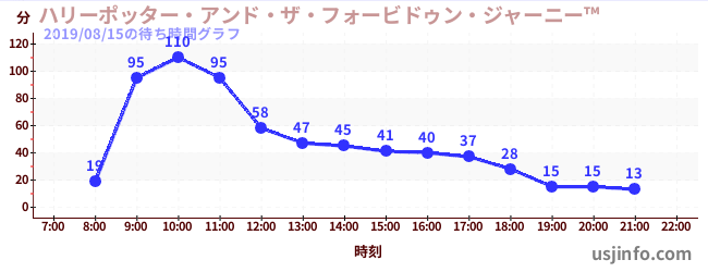 • ハリーポッター・アンド・ザ・フォービドゥン・ジャーニー™$B$N(B2019年08月15日の待ち時間