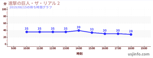 • 進撃の巨人・ザ・リアル 2$B$N(B2019年08月15日の待ち時間