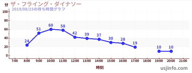 • ザ・フライング・ダイナソー$B$N(B2019年08月15日の待ち時間