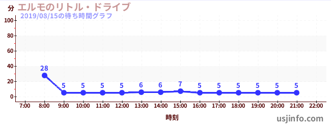 • エルモのリトル・ドライブ$B$N(B2019年08月15日の待ち時間