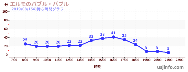 • エルモのバブル・バブル$B$N(B2019年08月15日の待ち時間