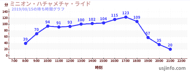 • ミニオン・ハチャメチャ・ライド$B$N(B2019年08月15日の待ち時間