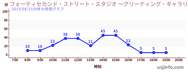 • フォーティセカンド・ストリート・スタジオ ~グリーティング・ギャラリー~ ミニオン$B$N(B2019年08月15日の待ち時間