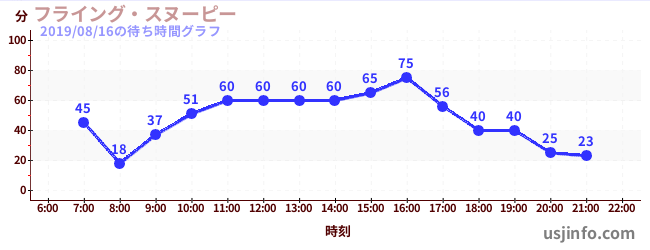 • フライング・スヌーピー$B$N(B2019年08月16日の待ち時間