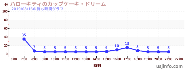 • ハローキティのカップケーキ・ドリーム$B$N(B2019年08月16日の待ち時間