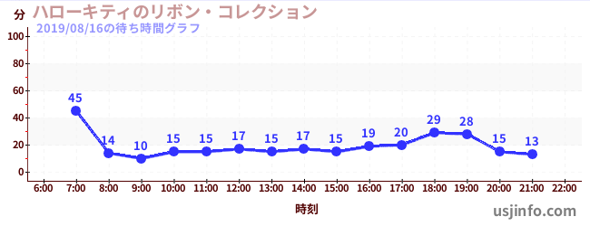 • ハローキティのリボン・コレクション$B$N(B2019年08月16日の待ち時間