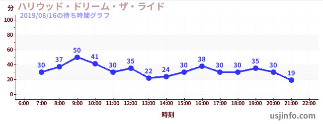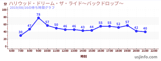• ハリウッド・ドリーム・ザ・ライド〜バックドロップ〜$B$N(B2019年08月16日の待ち時間