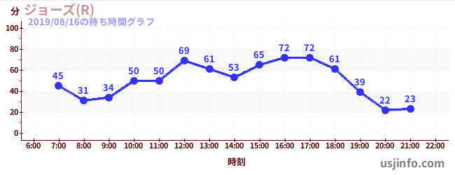 • ジョーズ(R)$B$N(B2019年08月16日の待ち時間