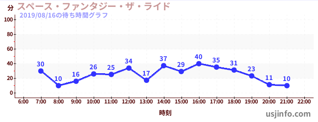 • スペース・ファンタジー・ザ・ライド$B$N(B2019年08月16日の待ち時間